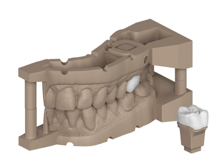 SprintRay Crown je keramikou plněný hybridní materiál pro 3D tisk jednotlivých korunek, inlejí, onlejí a fazet. Tento materiál se snadno dokončuje a leští tradičními metodami a nabízí vynikající estetiku, která se přizpůsobí stávajícím zubům.