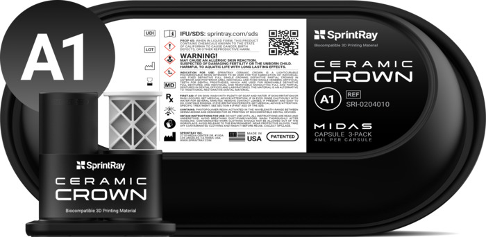 Ceramic Crown Capsules umožňují tisk definitivních estetických prací přímo v ordinaci během několika minut. Materiál s vysokým obsahem keramických plniv nabízí pevnost, přirozenou translucenci a je radiopákní.