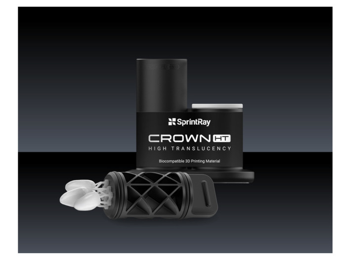 Crown HT, vysoce průsvitná pryskyřice od společnosti SprintRay, s více než 60 % keramického plniva pro realistickou difuzi světla, která replikuje přirozené zuby. Díky tomu je tento materiál ideální pro výrobu definitivních výplní, jako jsou korunky pro přední zuby, a minimálně invazivních výplní, jako jsou inleje, onleje a fazety, které vyžadují vysokou estetiku.
