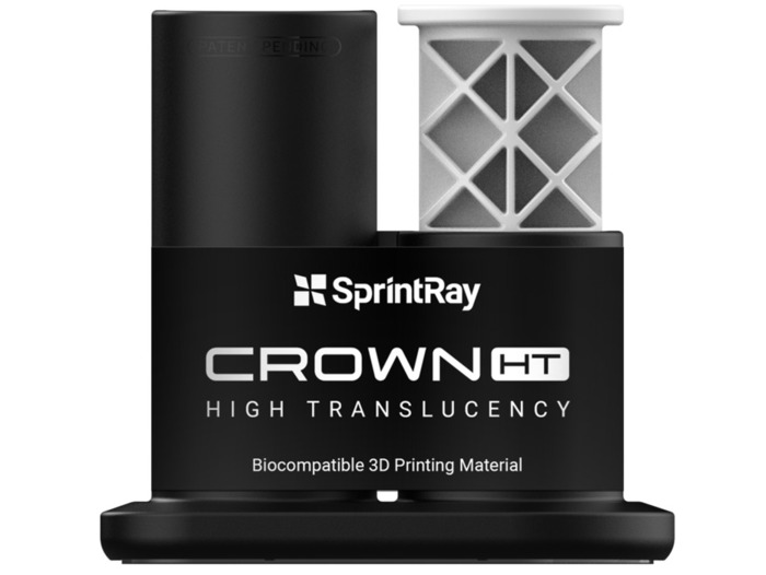 Crown HT, vysoce průsvitná pryskyřice od společnosti SprintRay, s více než 60 % keramického plniva pro realistickou difuzi světla, která replikuje přirozené zuby. Díky tomu je tento materiál ideální pro výrobu definitivních výplní, jako jsou korunky pro přední zuby, a minimálně invazivních výplní, jako jsou inleje, onleje a fazety, které vyžadují vysokou estetiku.