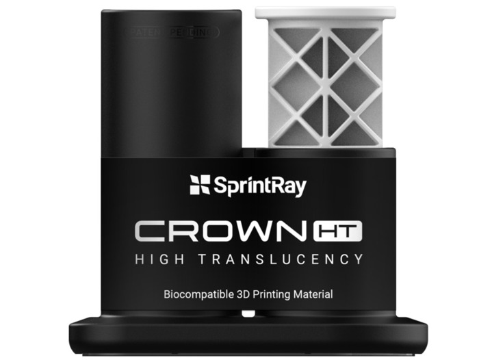 Crown HT, vysoce průsvitná pryskyřice od společnosti SprintRay, s více než 60 % keramického plniva pro realistickou difuzi světla, která replikuje přirozené zuby. Díky tomu je tento materiál ideální pro výrobu definitivních výplní, jako jsou korunky pro přední zuby, a minimálně invazivních výplní, jako jsou inleje, onleje a fazety, které vyžadují vysokou estetiku.