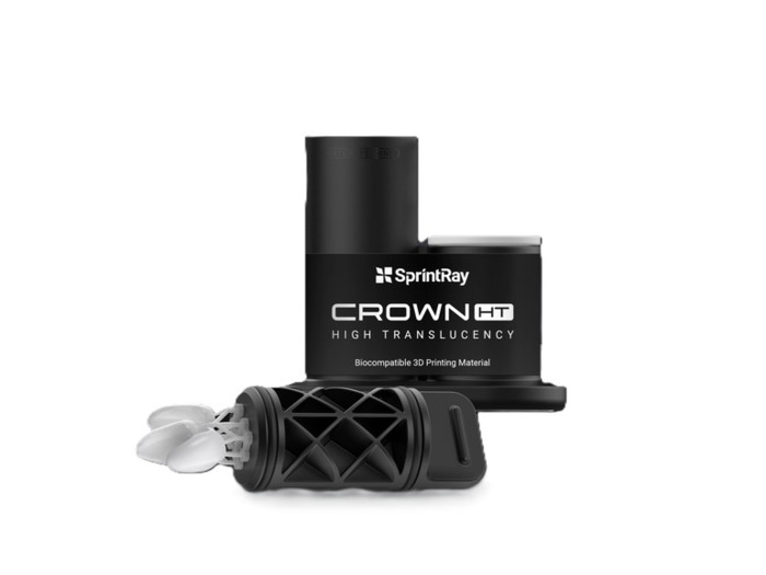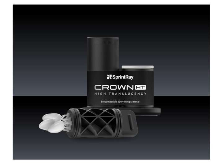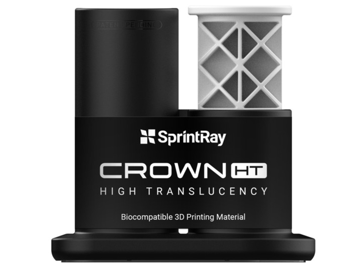 Crown HT, vysoce průsvitná pryskyřice od společnosti SprintRay, s více než 60 % keramického plniva pro realistickou difuzi světla, která replikuje přirozené zuby. Díky tomu je tento materiál ideální pro výrobu definitivních výplní, jako jsou korunky pro přední zuby, a minimálně invazivních výplní, jako jsou inleje, onleje a fazety, které vyžadují vysokou estetiku.