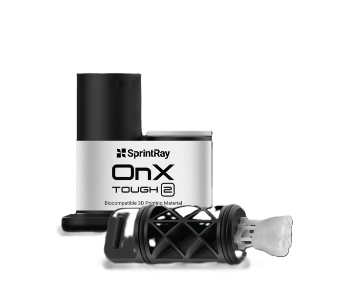 OnX Tough 2 od SprintRay je vysoce pevná kapslová pryskyřice určená pro výrobu implantátových suprastruktur a náročných protetických prací, zejména full-arch rekonstrukcí.